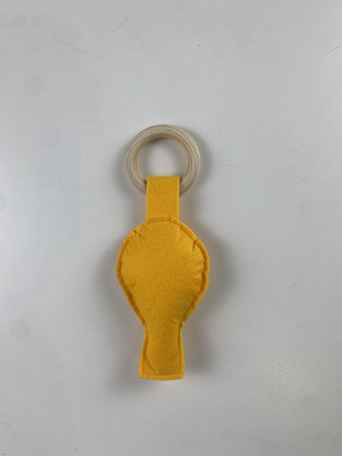 Υλικά: Μασητικός κρίκος από φυσικό ξύλο σφενδάμου, ελεγμένο για χρήση από παιδιά με βάση πρότυπο ασφαλείας EN 71-3: 2019, Υποαλλεργική τσόχα